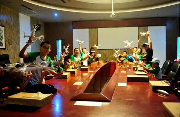 当老师给我们展示着各种新鲜的玩意儿,4旋翼、8旋翼的无人机,我们的眼球一下子被吸引了,全神贯注的听老师讲解无人机的驾驶。最兴奋的时候到了,我可以亲手操控虚拟无人机了,翻过高山、从天空划过。我激动得尖叫起来。听说我们营的Mark是航模高手,还获过奖呢。这一天,太帅了!—恩赫