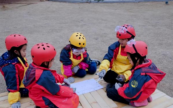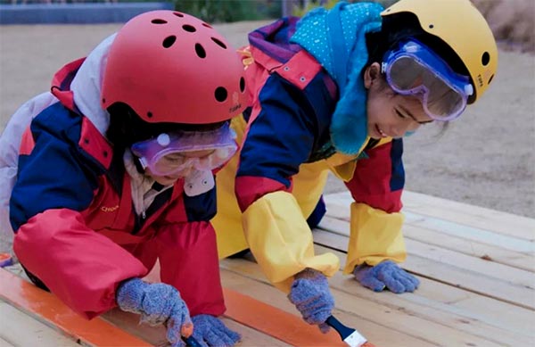 任务:树屋墙面装饰;小小粉刷匠,刷子手中忙。置身于自然中,孩子们的灵感如泉水奔涌,小小的树屋在孩子挥舞的画笔中穿上了七彩的衣裳。在孩子们的共同建造下,一座座树屋融入麓湖的景致里。