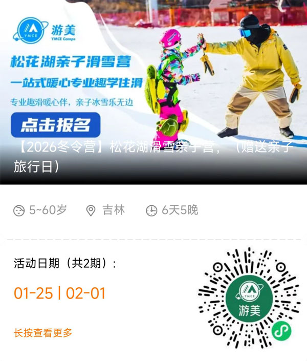 「吉林体育」2026松花湖亲子滑雪冬令营(6天)爸妈带娃去滑雪,一起get新技能