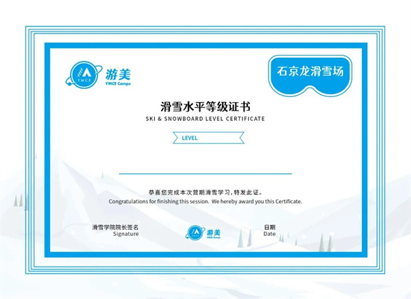 8、游美滑雪证书。