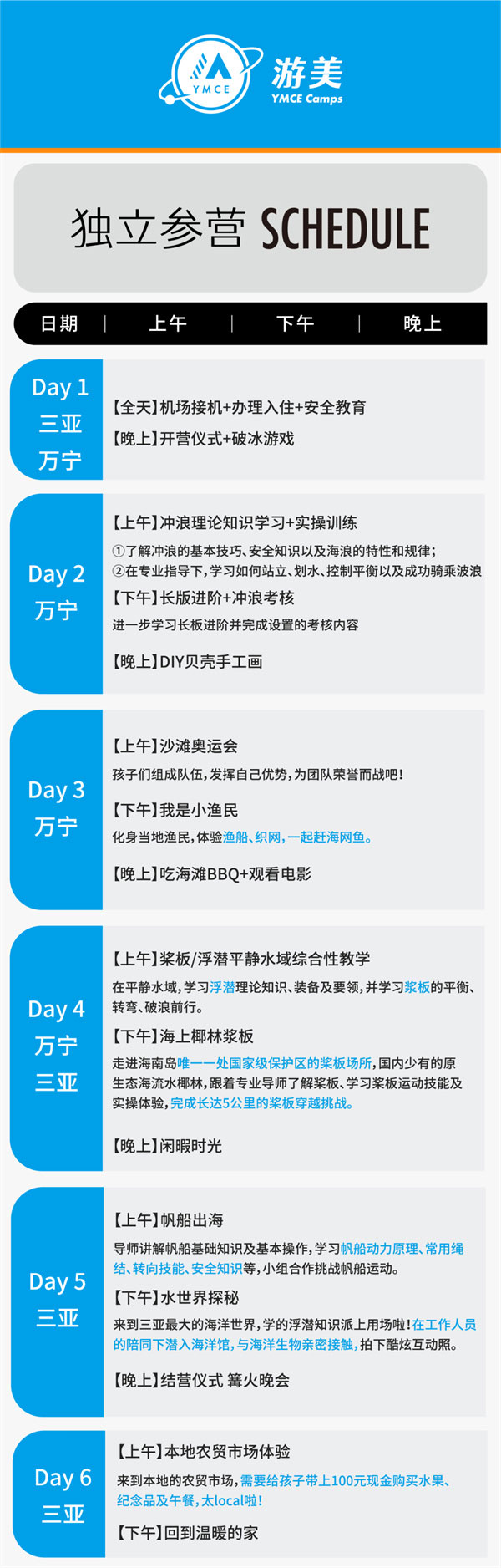 4、活动期间接驳集合/解散时间均需按规定时间抵达或离营,如不能按照规定时间,可协商单独解决,产生的额外费用需家长自理。