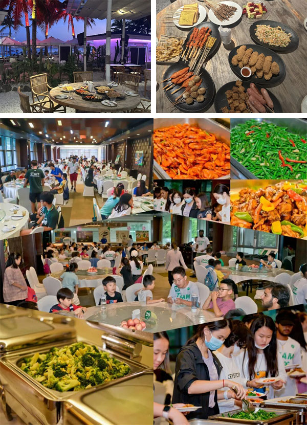 在餐食管理上以“品类丰富、营养均衡、食物来源可追溯”为原则,在“安全第一”的前提下,考虑到孩子每日的活动密集、运动量大等特殊饮食需求,一方面,一日三餐确保孩子基本的营养需求得到满足;另一方面,会根据天气冷热变化和活动需求,准备姜茶、冰水、绿豆汤等应时饮品,以及保障当季水果、酸奶等食品的丰富供应。