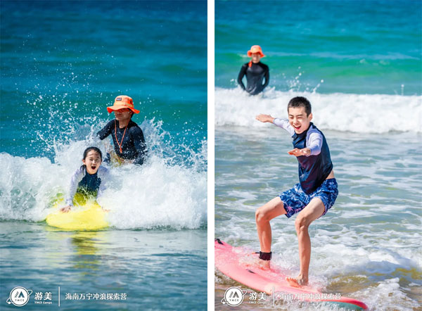 经历过海上冲浪教学&体验,乘风破浪的少年们逐渐找到海浪上的快感,营员将再一次踏上冲浪板,进一步学习长板进阶,与海浪来一次完美的追逐,并游美特别设定的完成海上冲浪考核。冲浪的魅力在于一次次挑战自我,踩在冲浪板上努力保持平衡,直到战胜浪花的那一刻,孩子们身上的勇气和毅力将完美展现!所有烦忧也都被停留在海面之上,让我们乘着风,尽情冲浪,体会与海浪搏击的乐趣吧!