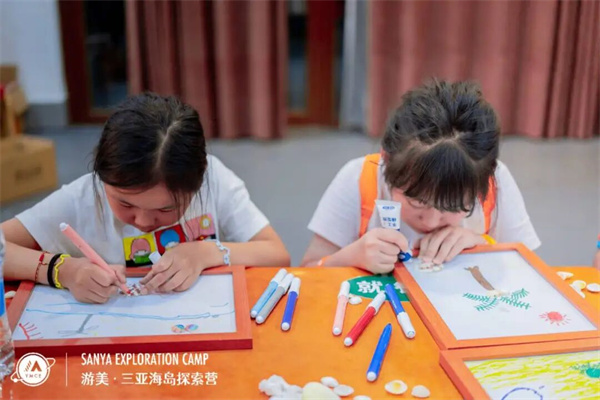 大海里生活着雨多海洋生物,珊瑚礁、贝壳、海螺...当这些海洋生物汇聚在一起,将产生怎样的美妙画卷?心怀大海,绘筑梦想,晚间我们一起DIY贝壳手工画,经过巧手相连,搭建出自己的海洋世界。本活动将全面激发出营员的想象力和动手能力,熏陶艺术气息,