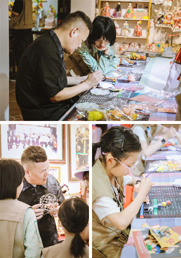 营员们可以在工作室了解木偶制作的各个环节,从木头雕刻成五官轮廓,到彩绘上色,再到穿上手工缝制的戏服。在老师的指导下,学员还能尝试完成一件掌上木偶 DIY 作品,亲身体验木偶制作的乐趣,感受匠人们的心血。