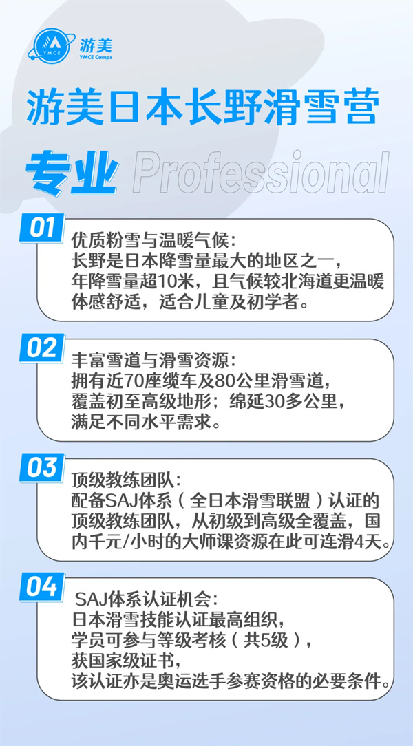 SAJ权威认证:通过系统培训可获取日本滑雪联盟(SAJ)等级证书,为青少年滑雪技能提供国际背书,助力未来赛事参与。