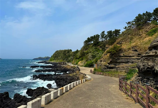 我们精选偶来小路10号,也是济州岛极具代表性的徒步路线,全程约10公里,堪称自然与人文融合的户外研学宝藏地。路线以独特海岸线、典型火山地貌和丰富人文景观为核心特色,沿途可近距离观察消波块、火山岩、麦田与海岸栈道等多样景致;还能打卡海女纪念碑(济州岛非物质文化遗产)、偶来小路专属路标、海岸灯塔等点位。