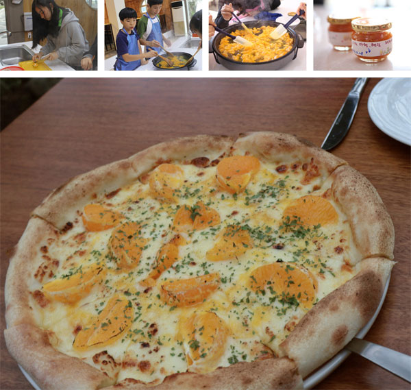 小小橘子工体验的最后一项任务是跟着老师一起学习简单的橘子小点心制作。在橘子农园,营员们可以使用新鲜橘子制作果酱或橘子匹萨,制作完成后还可以品尝或者带走自己的创意小作品。
