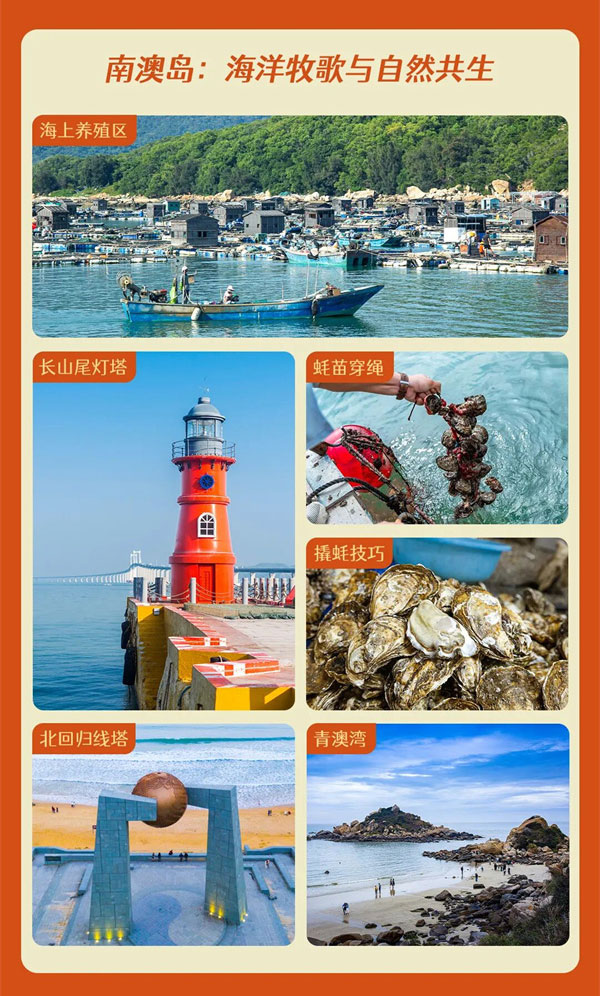 乘车过海,登上风车转动的南澳岛。我们将乘坐渔船,驶向蔚蓝的“海上农田”。看!成千上万的彩色浮球下面,藏着生蚝、扇贝的海底公寓。在这里,我们不再是游客,而是“一日小渔民”。